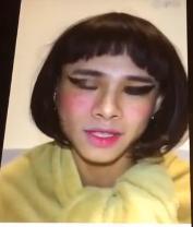 另外,在艾克里里发出来的搞笑视频中,镜头前的艾克里里妖里妖气的开始自我介绍,然后就标榜自己刚刚出国了,瞧不起小学生的化妆,声称要自己来给大家普及一下什么叫做化妆,不一会儿他就开始了“化妆”,先是不知道在脸上抹了不知道是什么的类似于隔离霜之类的东西,然后拿着他口中的眼线笔(其实是记号笔)比这银行卡开始画眼线,后来又开始了口红和腮红。